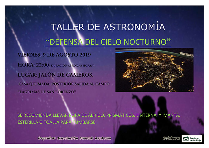 Por motivos ajenos a la organización, mas concretamente, por motivos meteorológicos, hemos tenido que aplazar el taller de astronomía que teníamos previsto realizar el viernes día 9, las nubes cubrían el cielo y no era posible el visionado de estrellas.